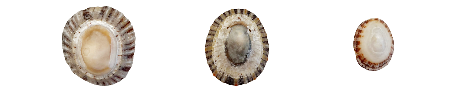 I pick up another shell, similar in size and shape, and another smaller one. I say: “This one is for you. And this one is for the baby.” She smiles and nods and takes the shells.